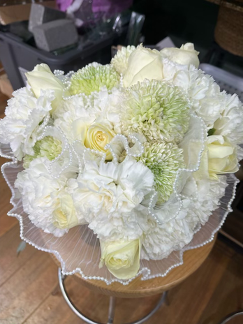 "Thank you so very much for being a part of our special day. I absolutely loved the bouquet and the hair piece was just perfect. The vibrant colours were just fabulous. Thank you so very much. The baby's breath in the bridesmaids hair was beautiful too, a lovely touch.